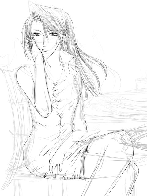 とりあえず腰掛けている風のリザちゃんを書いたら自然と手が首の辺りにあって。