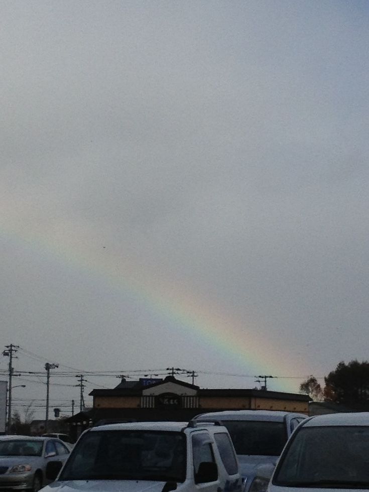 この後車を走らせるともっと綺麗な虹が出て、この虹の内側にもう一本、虹が入ったんですわ。
