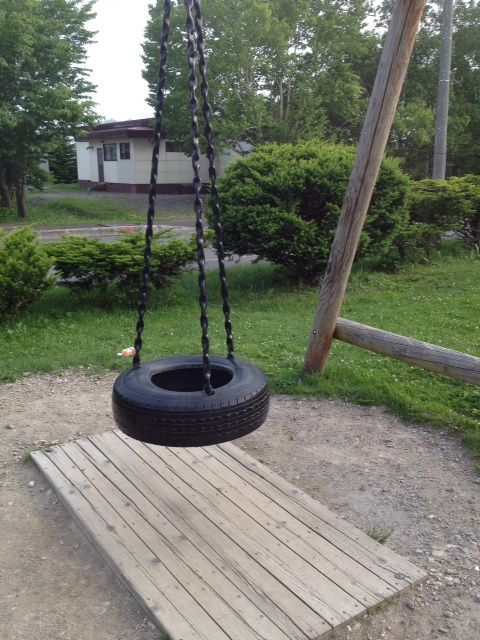 どうやって乗るんだ? と思ってたら、片足のせて、片足でけんけんしながら地面を蹴って周りながら前後に動いていたという……すげぇ遊具。