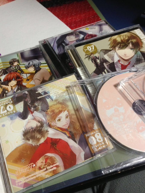 全部聞きたかったけど、時間的に厳しかったので、オータムとアフターオータムのCD2枚、スタスカラジオ局1(アニメイトで流れたらしい。変態桜史郞焼くの諏訪部さんが司会進行して、それぞれキャラの声優さんを呼び、一般の女子からの質問メールに答えるという番組があったそうな。郁役の遊佐さん、そらそら役の平川さんが出てたから買ったけど、それ以外の緑川さんや福山さんも面白かった。緑川さんは諏訪部さんの結構先輩になるようで(少しだけかと思ったら、結構離れてるのかな?)とってもセーブしたしゃべりが面白い。それに気づきつつ、暴走気味な緑川さんが可愛かった。というわけで、これは他も聞きたいと思ったですよ)錫也の彼氏CDで終了。